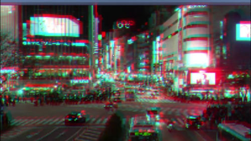 スクリーンに投影されている映像の前で手を動かすと、映像にグリッチノイズが入ります。LeapMotionというセンサーで手の動きを検知し、動かしたタイミングで動きに合わせたグリッチノイズが入るようになっています。現状、仕組みを作った段階ですが、今後この仕組みを活かした展示を考えていきたいと思っています。